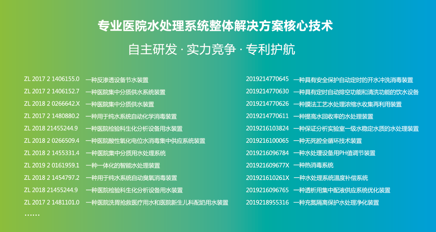 龍新凈水作為一家專業提供醫院集中分質供水(含中央純水)系統的國家高新技術企業,已經擁有百余項國家發明及實用新型專利技術證書,技術研發中心的建立,強有力的提升了現有技術水平和研發實力,促使龍新在醫院集中分質供水領域更專業。