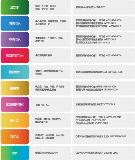醫院各科室水質分類與科室需求
